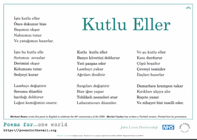 I was recently sent a translation of Michael Rosen’s poem “These Are The Hands” which was written for the 60th anniversary of the NHS thank for letting me share it!